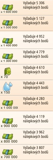 | 5. | Dosáhni na své hl. farmě min. 1 200 spokojenosti | 27 |