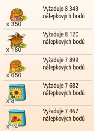 | 1. | Dosáhni na své hl. farmě min. 500 spokojenosti | 8 |